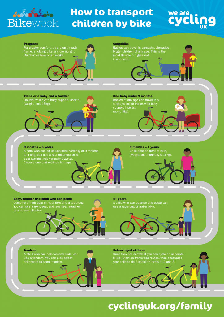 Knowing when to replace or upgrade bikes as children grow can be confusing. Cycling UK has lots of useful advice, from the route map infographic to advice and videos on all aspects of family cycling