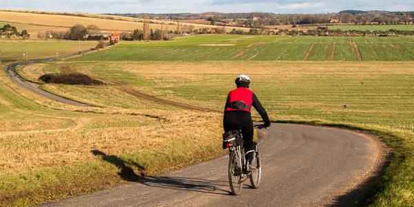 A long gentle descent through Upper Basildon, with views across the Goring Gap.