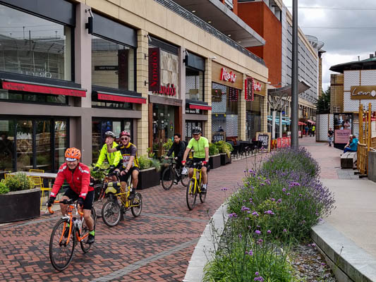 Shoppers and others wandering around at The Oracle. It is a perfectly legally cycling route, but cyclists should take care and give way to pedestrians.